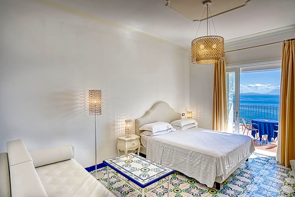 The spacious double room features air conditioning, a mini-bar, a terrace with sea views as well as a private bathroom boasting a bath.